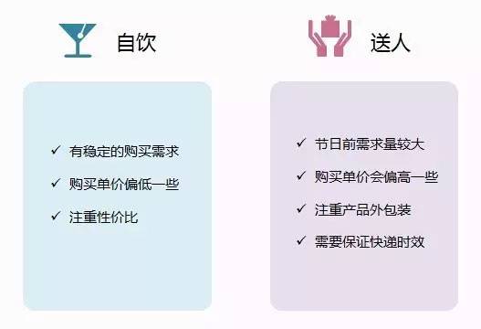 ? 節(jié)日推出禮盒裝,送禮套裝,送精美禮袋等等————適合各種酒類,可以給送禮的人群推送(不限送禮對象都可以進行引導)。